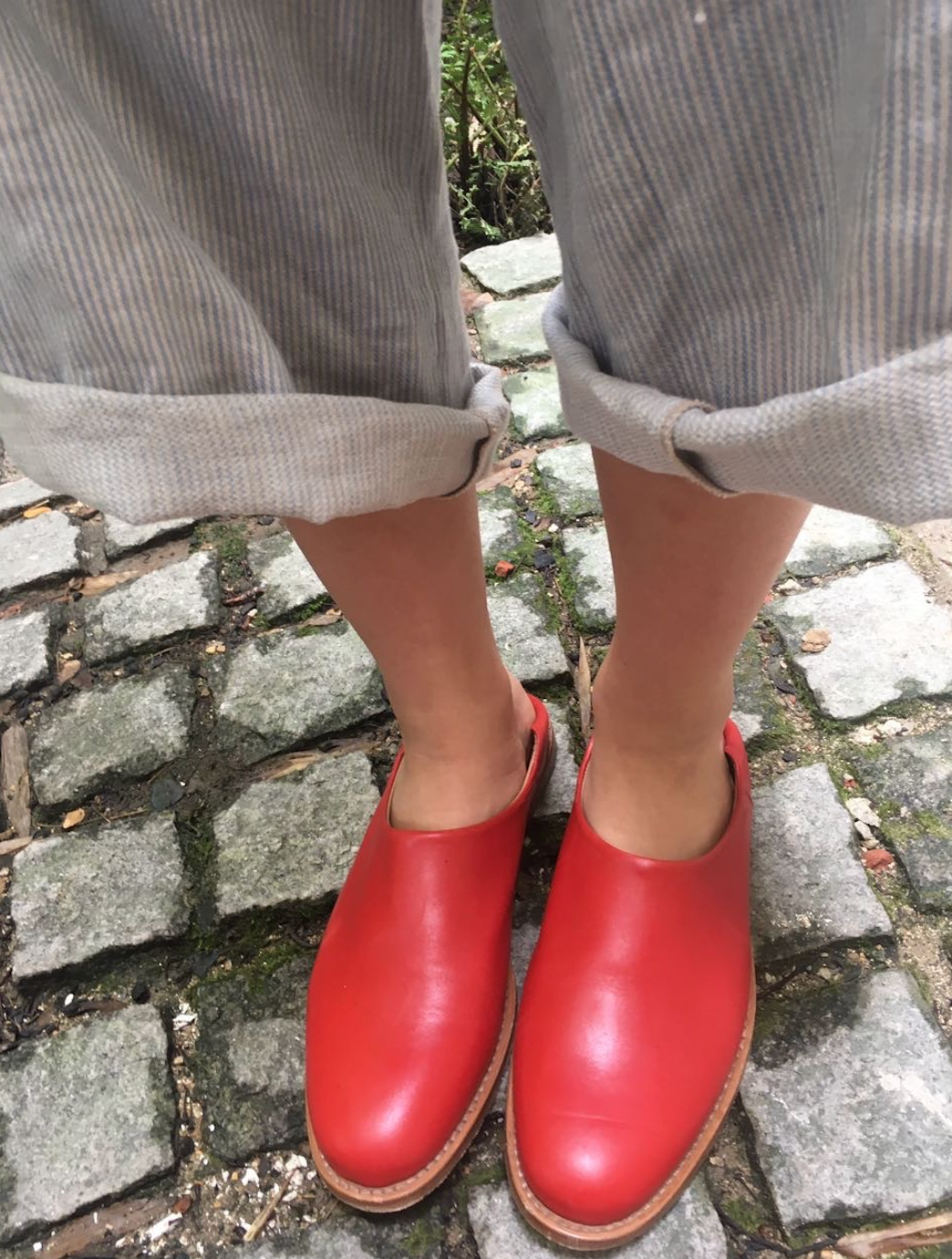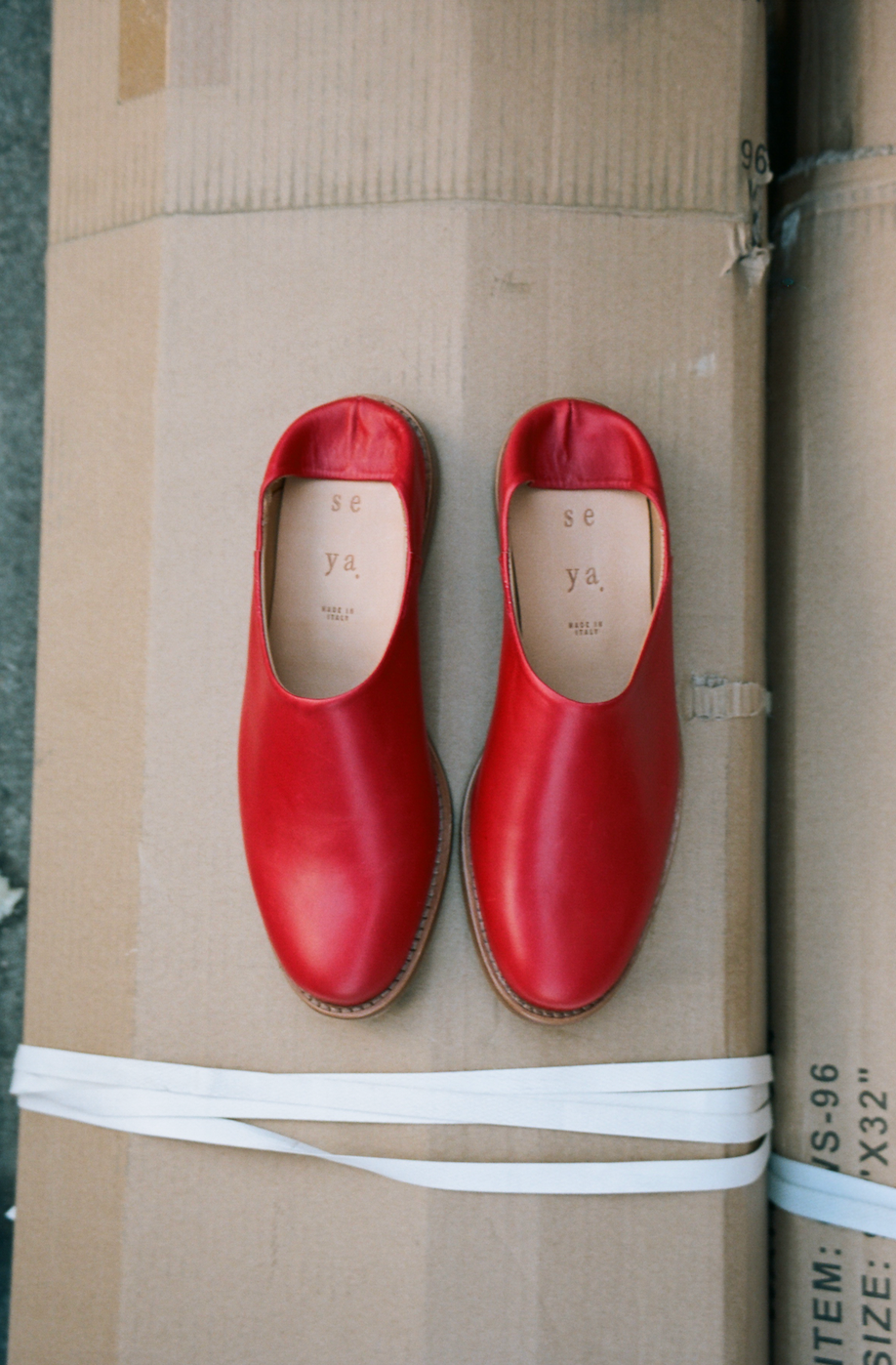 seya.オリジナルのバブーシュ。踵を踏んでもあげても両方で履くことができます。サイズ感は少し小さめ。イタリア製です。